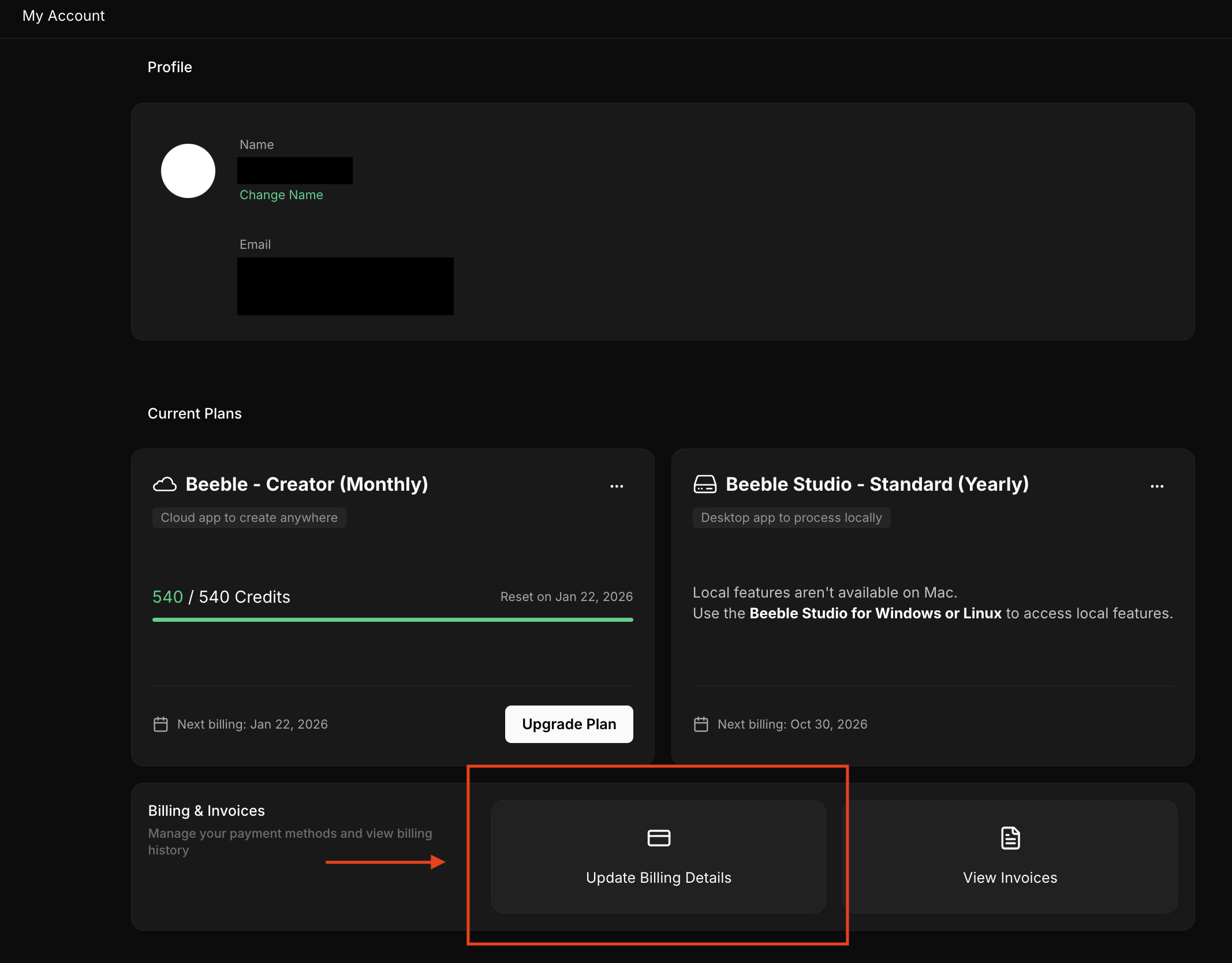 | Feature | Beeble (Cloud app) | Beeble Studio (Desktop app) |
