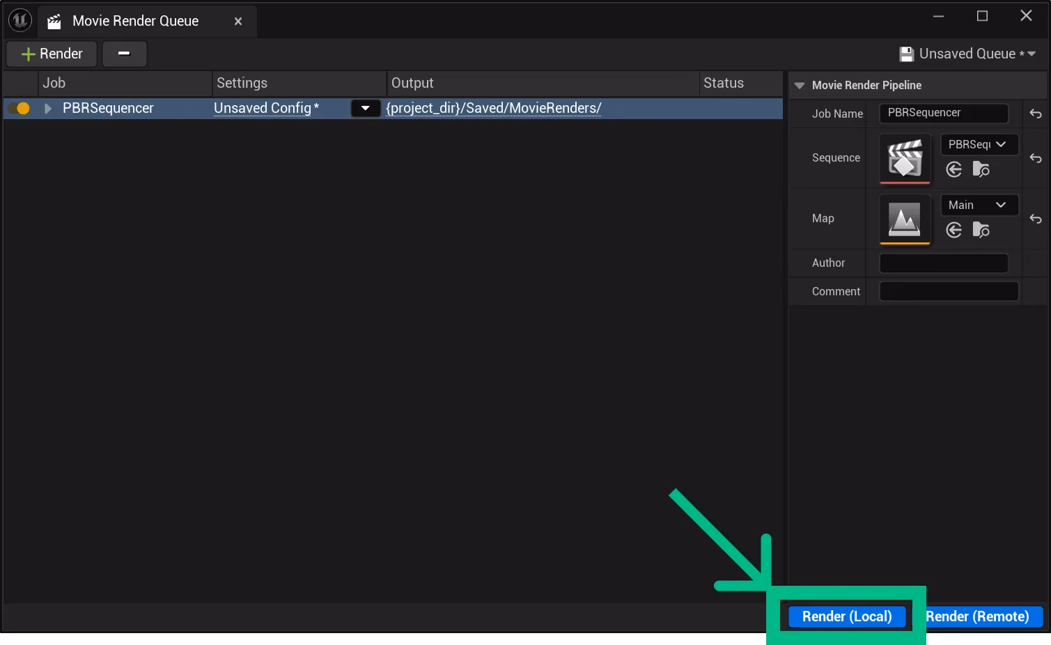 Click on the Render (Local) button. In case the Movie Render Queue window doesn’t appear, verify that the Movie Render Queue Plugin is enabled.